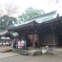 雨交じりのあいにくの天候でしたが、お宮参りの方が多く、境内はとても賑わっていました。なかなか堂々とした印象の神社でした。