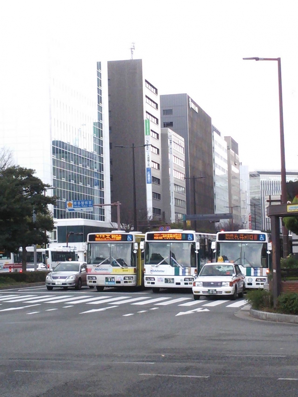 交差点を何台も連ねて走ったり、交差点で横に3台並んで信号待ちなんて、さすが日本最大のバス会社です。