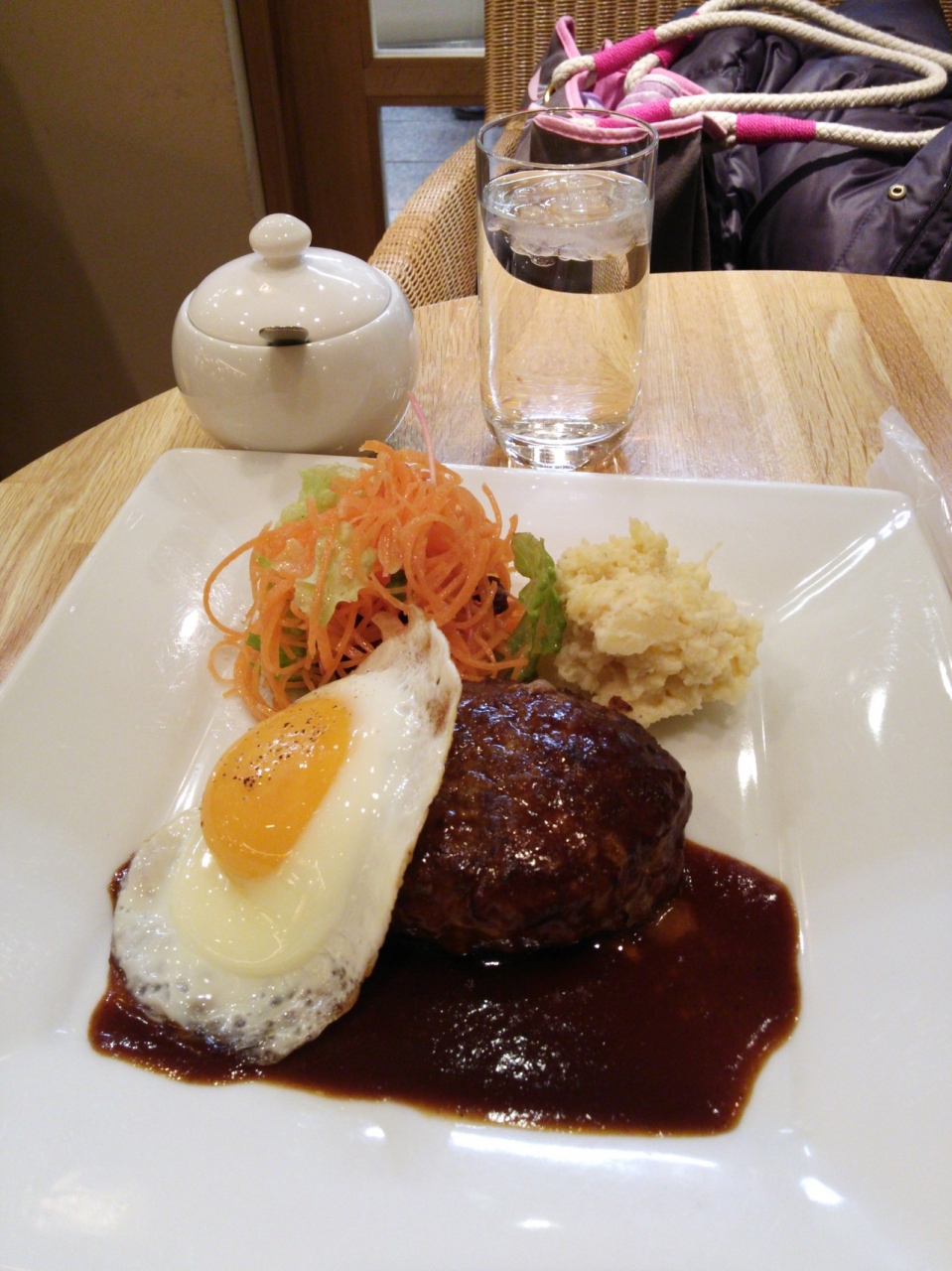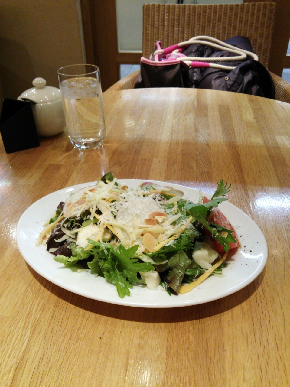 夕食に三条店を利用してみました。4種のチーズのサラダとハンバーグを注文しました。
