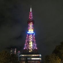 絶えず色を変化させてながら光を放ち、内部を通るエレベーターまでも光って、大通公園のシンボルとして通行人を魅了してくれる。