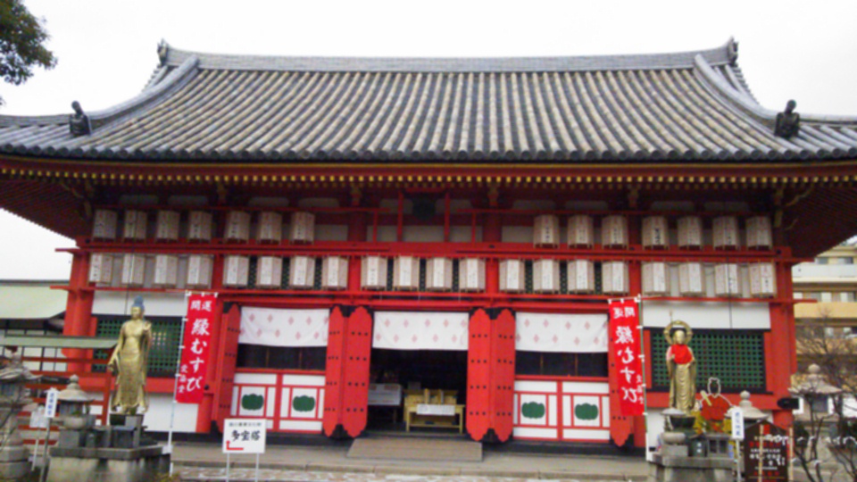 愛染堂勝鬘院(あいぜんどうしょうまんいん)は「愛染さん」と呼ばれて親しまれております。愛染明王は良縁成就の神様として有名です。