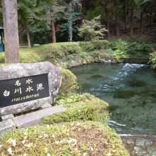 透明度の高いきれいな水が湧き出て流れていた。毎分60トンの湧水があり、環境省の名水百選に選ばれているという。また、近くにもたくさんの水源があるそうだ。水源の脇に白川吉見神社という神社があった。水源まで行く道の途中には売店があり、地元の農産物や土産物などを売っていた。