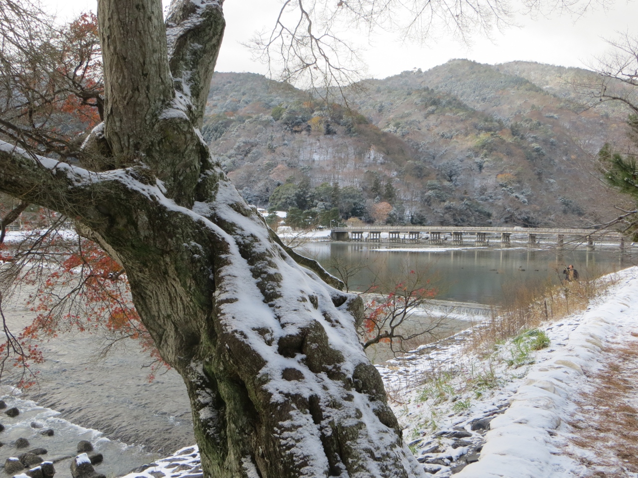 暖冬だと気象予報士が行っていたのに今年の冬はものすごく寒い。珍しく12月に雪が降った。ほとんど雪の嵐山は見れないのでラッキーかもしれない。寒い中写真を撮りに行った。秋の観光シーズはすっかり終わり、通勤する人以外ほとんど人はいない。やはりカメラを持った人が数人。綺麗な雪景色でした。