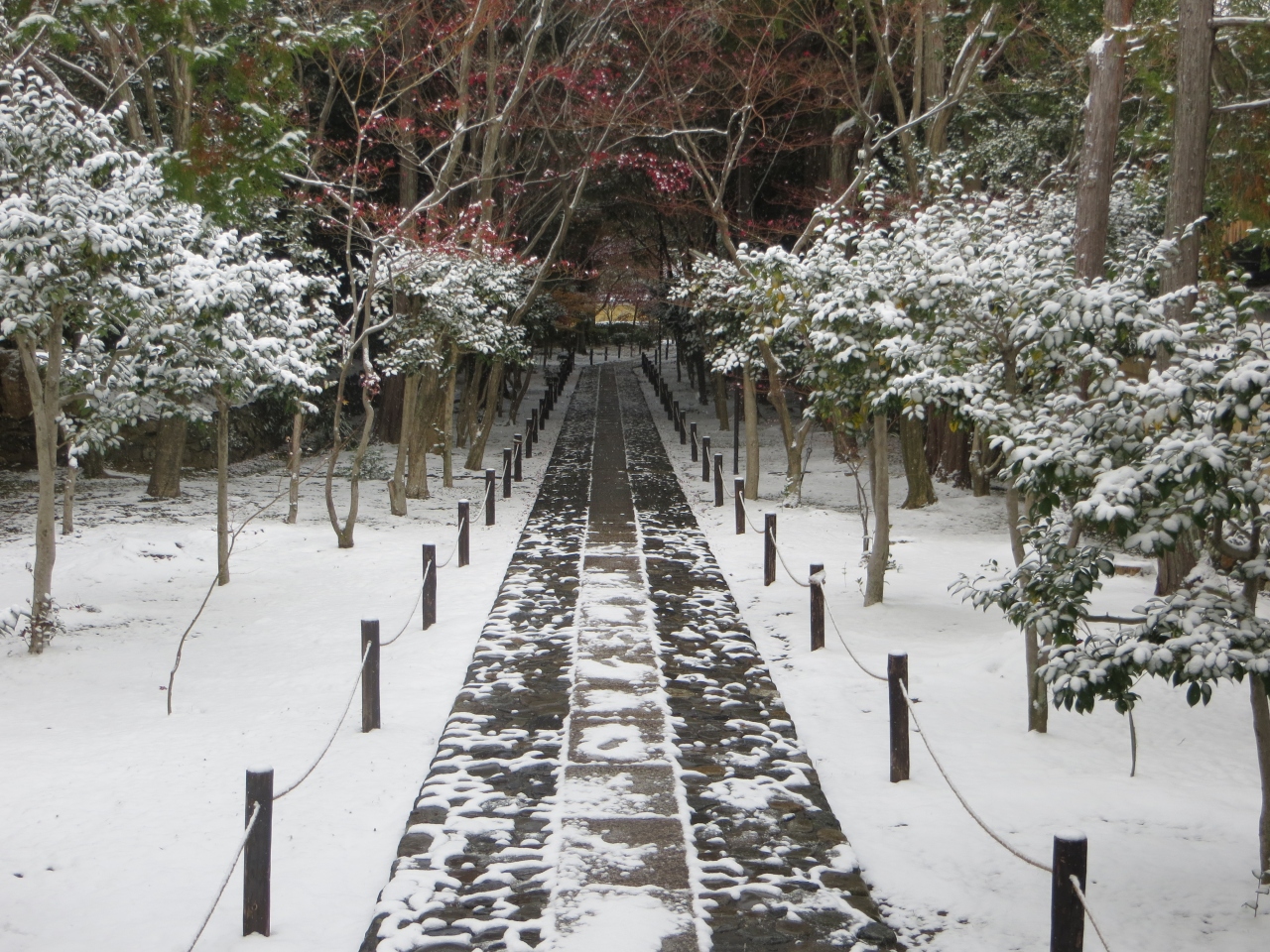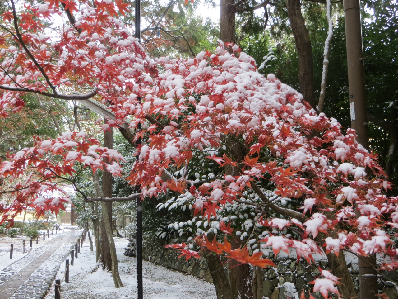 紅葉の名所鹿王院が雪化粧。