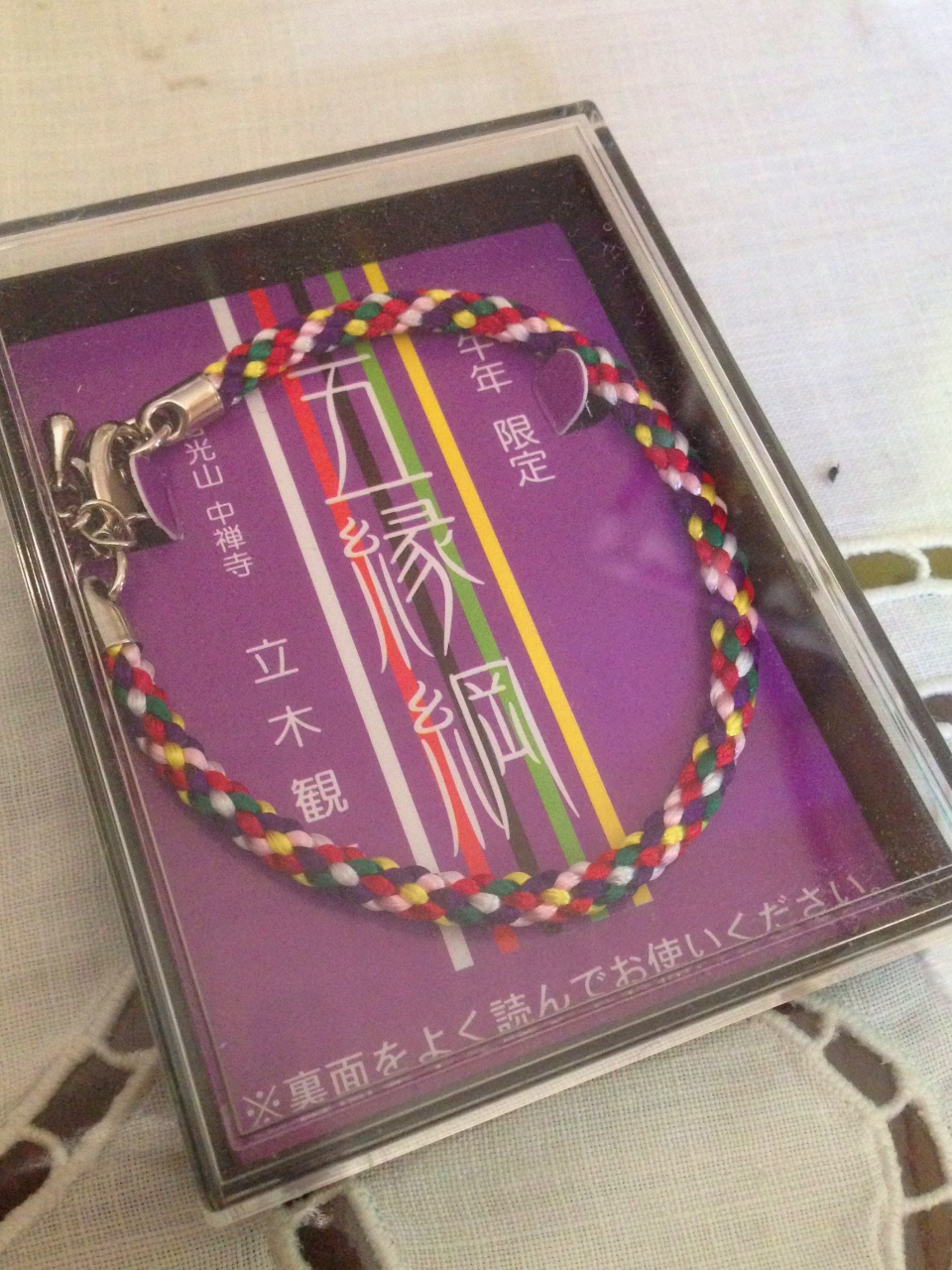 堂内では、観音様と御縁を結ぶ「五縁綱」というお品がいろいろと売られていましたので、記念にブレスレットを買い求めて来ました。