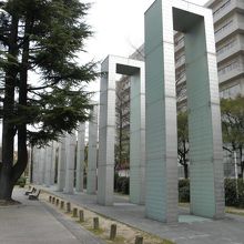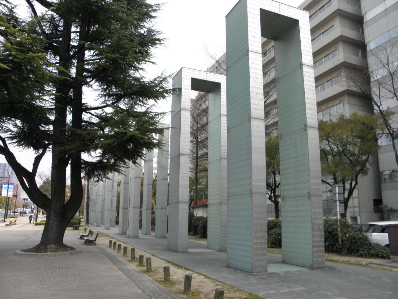 平和を祈るモニュメントとしても秀逸ですが、街を彩るモニュメントとしても非常に美しいものです。神秘性を感じさせる素敵なデザインです。