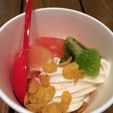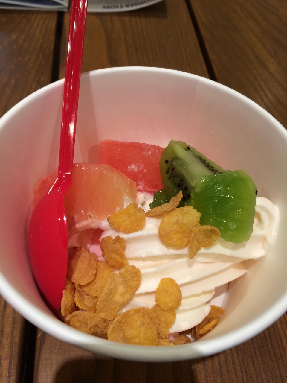 アイスクリームの量り売りのお店です。カップの中に自分の好きなアイスクリームとフルーツやナッツ、チョコレートなどのトッピングを選んで入れて、最後にお金を支払うシステムです。100グラム330円です。アイスもいろいろ種類があり、2種類くらい入れるとあっという間に200グラムは超えます。フルーツ系も重さがかさみ、結局770円位でした。おいしいし楽しめるけど、味がものすごくおいしいわけでもないので、割高感は否めません。