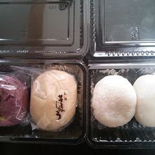 菓子屋横丁の一番端(一番街の逆側)に位位置します。いもをふんだんに使った菓子をたくさん置いてあり、せっかくなら看板商品の芋まんじゅうや芋大福を買うのがよいかと。1個ずつ買えるので食べ歩きも可能です。もちろん芋以外も色々あります。
