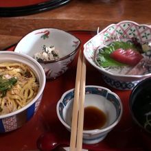 飫肥城の入り口から左折して50メートルほど言ったところに「服部亭」の看板がかかっている。昼前に行くと人気食事処だけに待たされる。その間近場の観光地を散策し、形態で呼び出しをお願いすることが出来たので合理的に回れた。ここの定食が看板で2の膳迄出て跡お茶とデザートが付く。庭を眺めながらの食事が楽しい。