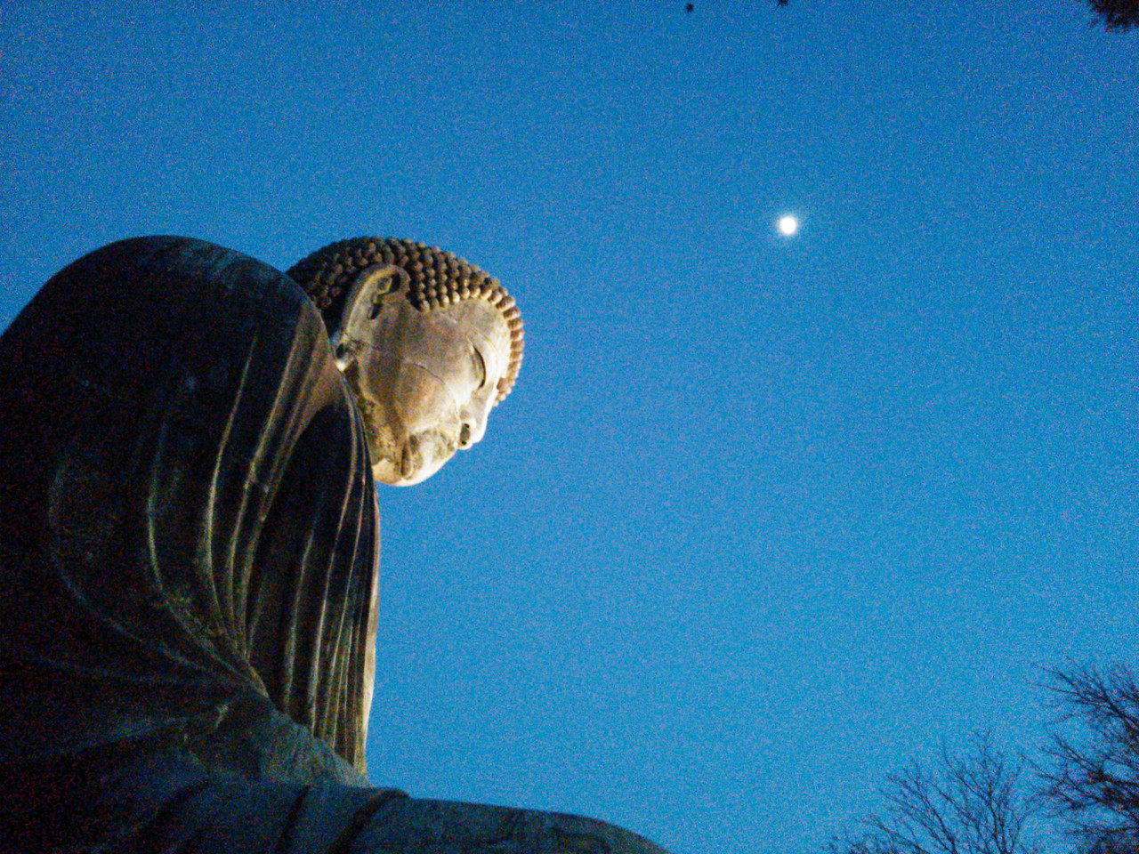 夕方閉門直前の訪問でしたが、夕暮れ時の幻想的な雰囲気の中、ライトアップされた大仏はとても美しく見えました。