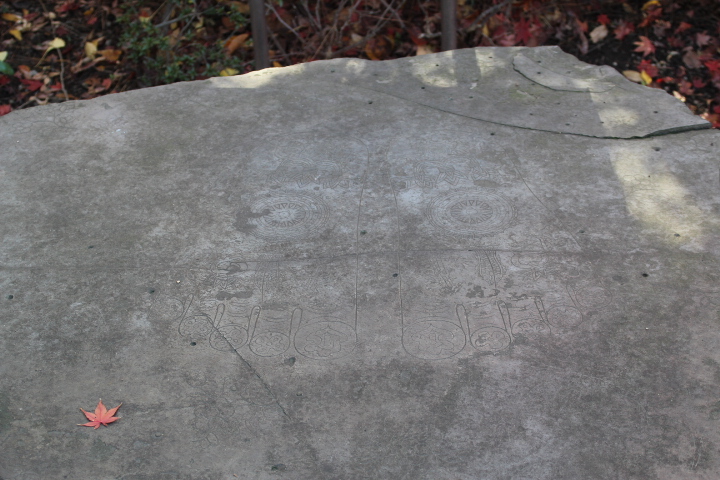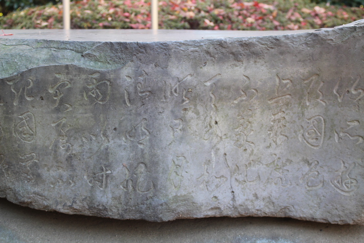 仏足石は増上寺の解脱門から入って左手にあります。参道の両側に記念碑などがたくさん建立されていてその一角に安置されています。仏足石は仏の足のうらの形を石に彫りつけたもので仏像が造られる前は仏足石を仏として礼拝したそうです。