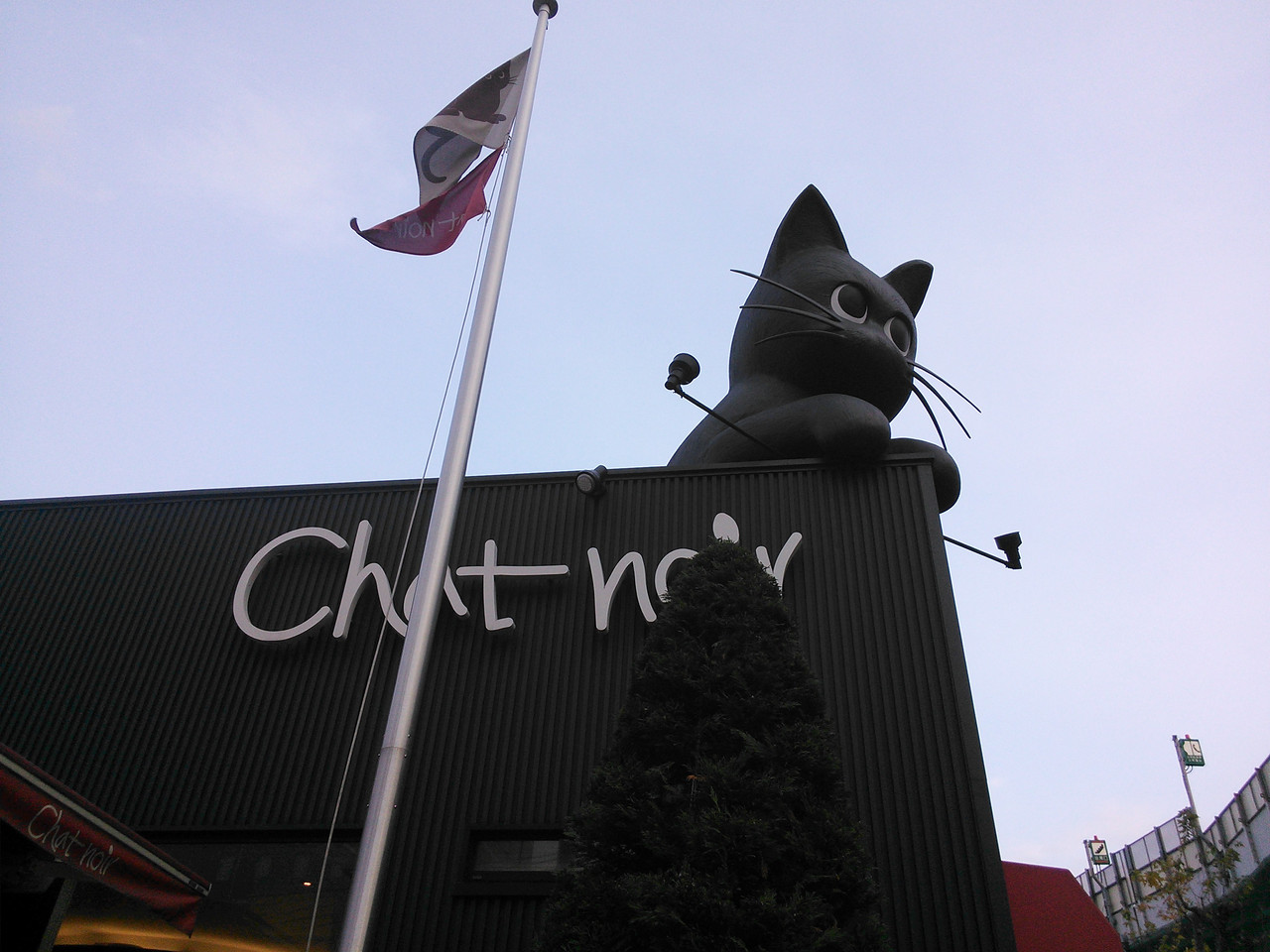 黒猫がモチーフで、建物上に大きなオブジェがあり、目につきやすいです。