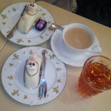 レトロで可愛らしい店内の奥に喫茶コーナーがありました。店内にはステンドガラスが所々に施されていて今どき珍しいレトロな雰囲気が新鮮な印象を受けました、バタークリームでできているプードルのケーキが有名で、いただきましたが美味しかったです。