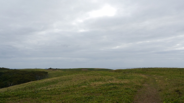 尻羽岬(シレパ岬)は厚岸の市街地から釧路方向に約30?のところにある岬。付近はこの岬を含めて難読地名が数多くつけられたエリアで各所に解説版が設けられていた。岬までの道は途中ジャリダートの道を経て、駐車場からは遊歩道を10分程度歩く。周辺は草原地帯、岬からは太平洋と中央に島が見られてなかなかの景色。晴れていればなおよかったが。