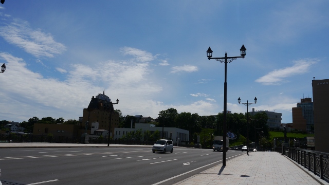 釧路駅から約1km、釧路川にかけられた橋。北海道3大名橋の一つに数えられている。その形状には雰囲気を感じさせられる。橋の美しさもさることながら、橋から眺める海側の景色が絶景で特に夕暮れ時の景色はすばらしく、ここからの夕日は世界3大夕日とさせているとのこと。