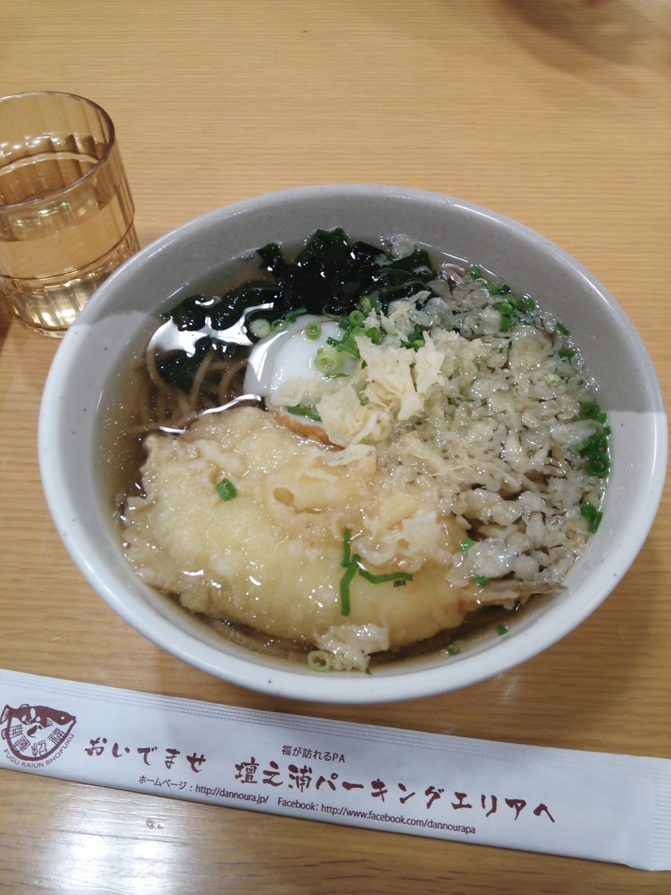 私はリーズナブルなフクの天婦羅入りのソバを食べました。磯の香りがほのかにして大変美味しかったです。