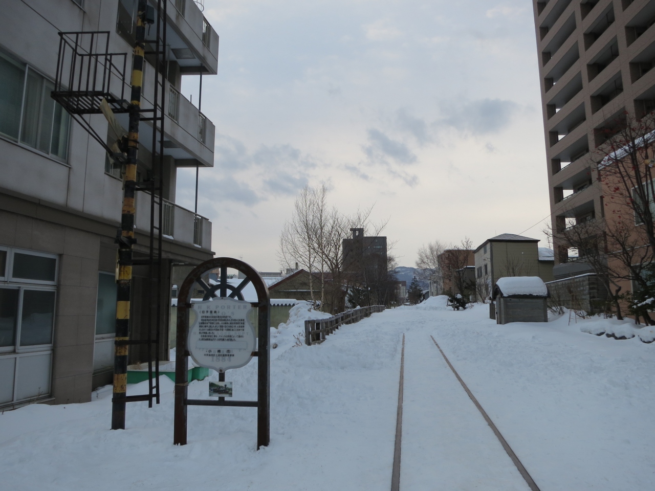 かなり良好な状態で保存さている廃線跡。小樽駅と小樽運河の間にあるので、誰でも目にすることができます。かなり手の込んだ蒸気機関車の雪像(有志?)が作られていたり、冬の風景もなかなか。さすがに踏破は断念しましたが…笑