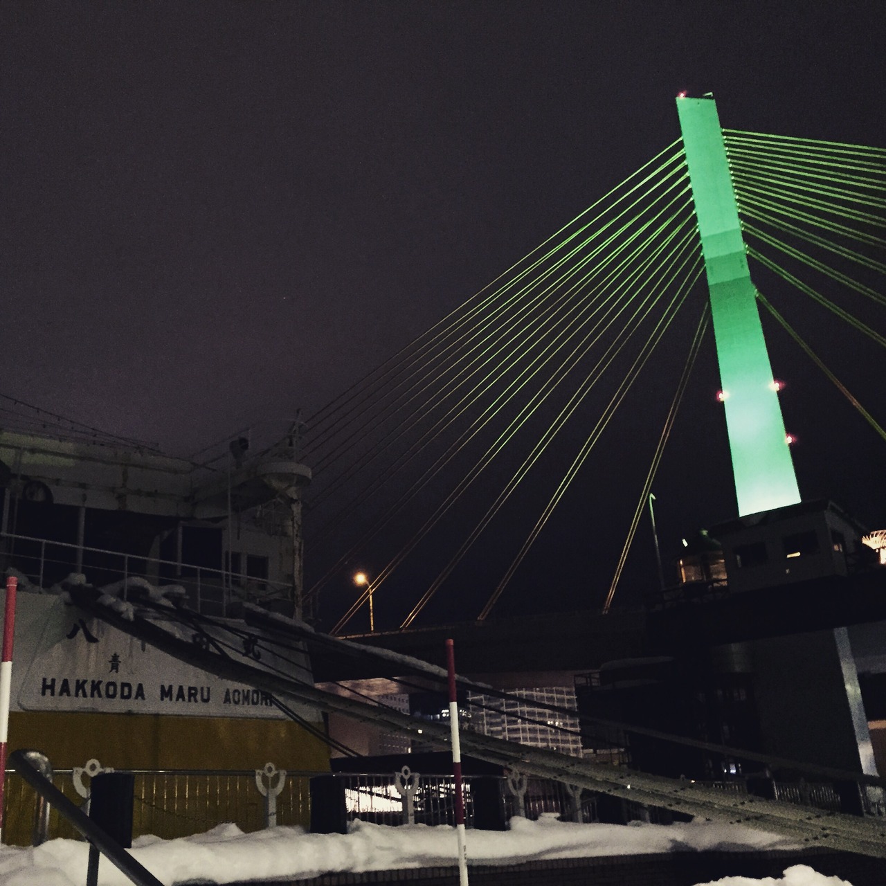 はまなす乗車前、入館はできなくとも、間近で見る価値ありです。船の側面の無骨とした感じが堪らないです。ライトアップされているので、夜景でも綺麗です。青森駅と桟橋で直結されているのが、往年の賑わいを彷彿とさせます。