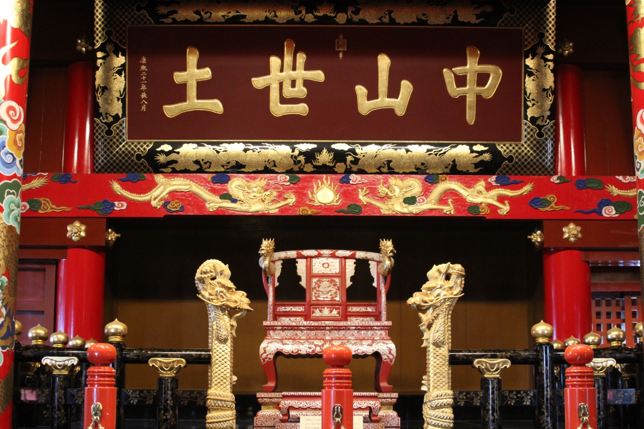 首里城正殿は奉神門の先有料区域にあります。御庭から正殿の外観を堪能してから、内部を見学したらよいと思います。2階の煌びやかな大庫理にある御差床(玉座)や1階下庫理の御差床は必見です。また、1階の床の一部がガラス張りになっていますが、その下に遺構を見ることが出来ます。これこそ世界遺産に登録された対象物なので見逃さないようにしてください。