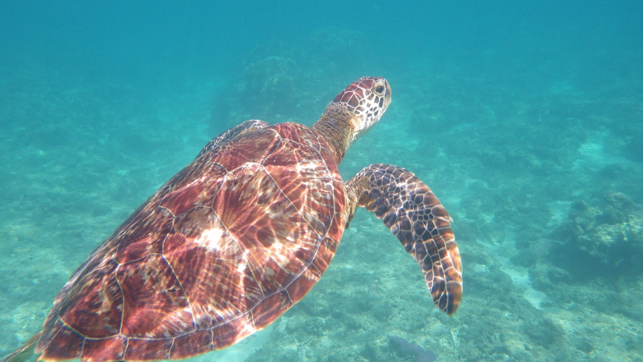 テトラポッドのようなものが多数おいてあり、海水浴場という雰囲気ではない。阿嘉島でウミガメと遭遇するにはこのビーチが一番ということで、座間味に渡る日の午前中に行って見ました。すると大きなウミガメ複数と遭遇できました。人を怖がらない様子で、触れそうなくらい近づいても逃げませんでした。もちろん触ってませんが・・・。同じ宿にいた韓国人も一緒でしたが、彼らは泳ぎは早いのですが、結局遭遇できなかったようです。運が必要かも。