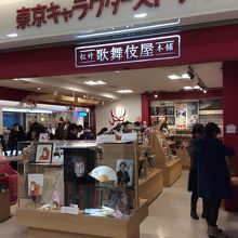 八重洲の東京一番街のキャラクターストリートのエリア内にある歌舞伎関連グッズ専門店かつアンテナショップです。隈取デザインのグッズや、歌舞伎揚、抹茶カステラなど歌舞伎座の人気商品がここで買うことができます。