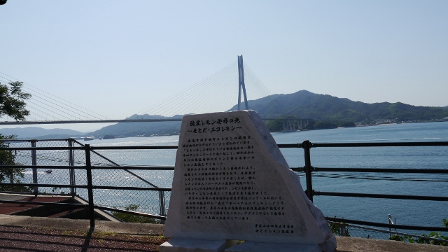 今治からしまなみ海道サイクリングを始めて県境をこえ広島県に入り最初に到達する島。国産レモン発祥の地とされ現在も生産量国内日本一とのこと。耕三寺などの観光地がある。サイクリングコースとしては海沿いの道を約12km程度の距離で次の島までは結構距離がある。