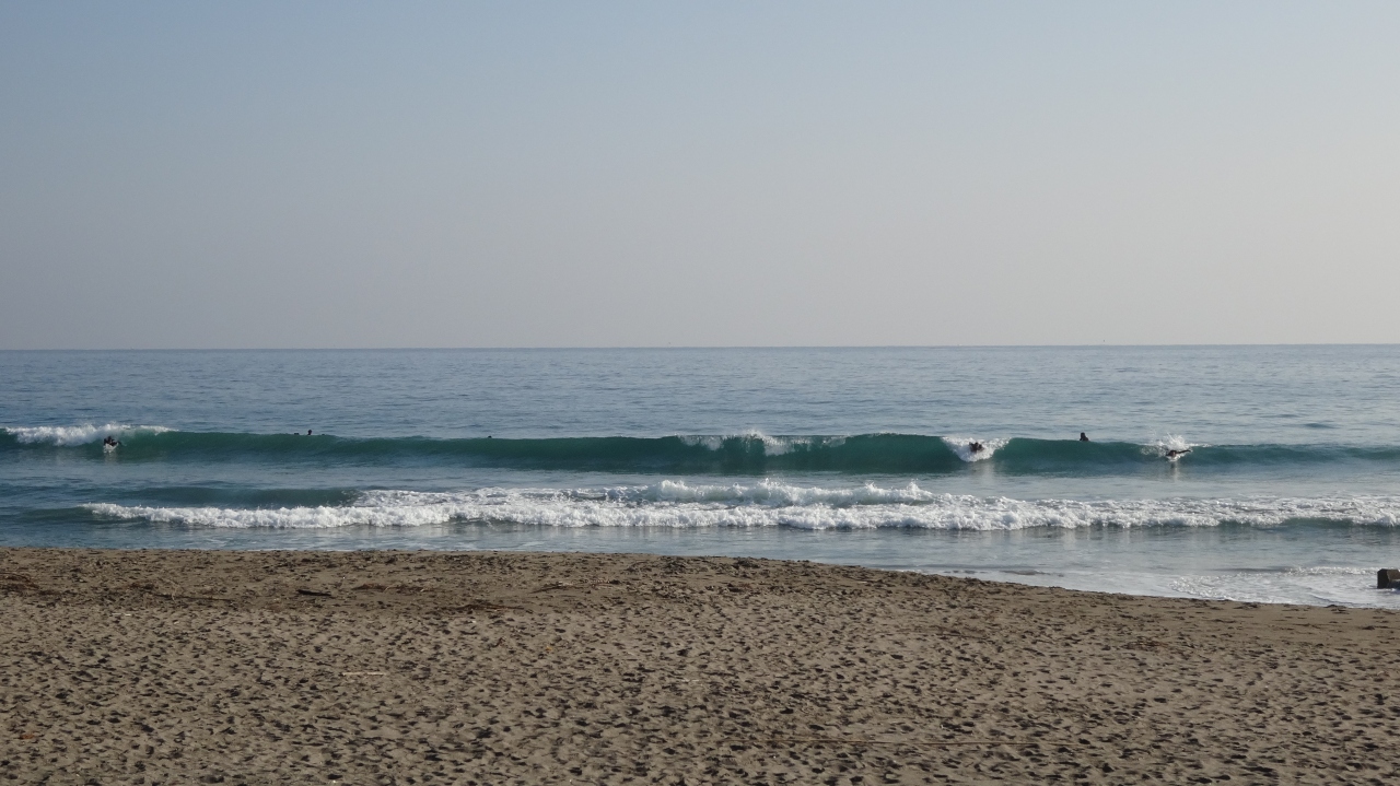 この辺りは冬も暖かく、海岸は広く長いため、冬のサーファーにとっては絶好の穴場ではないかと思います。波も今日は綺麗に立っていましたので、私もサーフィンしたくなりました。駐車スペースも広くありましたので、次回は挑戦したいです。
