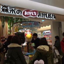 八重洲の東京一番街の東京おかしランドのエリア内にある森永のアンテナショップです。大きなキョロちゃんが目印ですが、そのキョロちゃんのおやつという、スポンジケーキの中にカスタードクリームが入ったお菓子などがここでしか買えません。