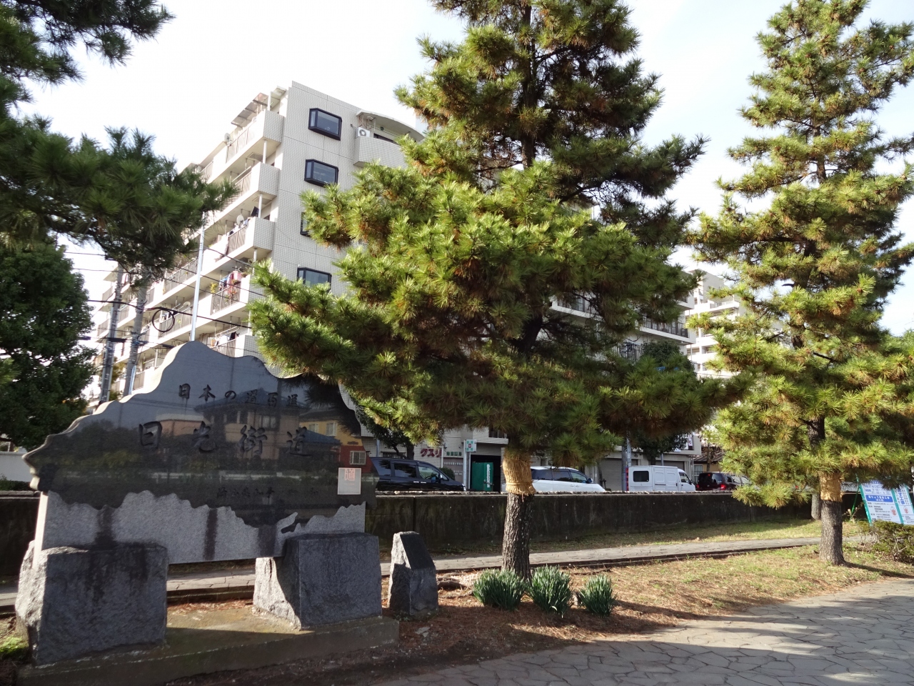 松並木の間に広い歩行者用道路が作られているので、