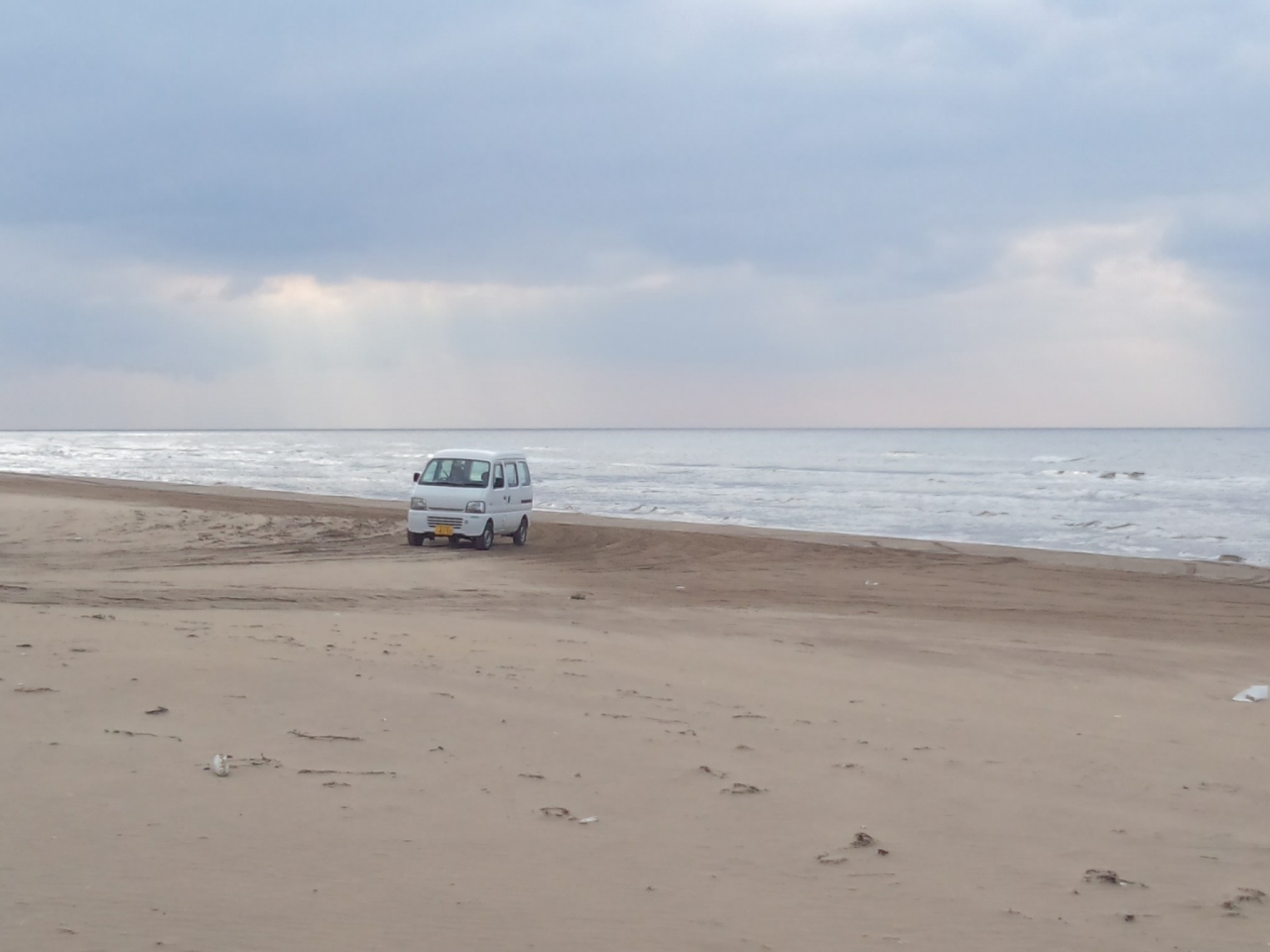 千里浜を散策するとたくさんの車が走っていて見ていても楽しかったです。