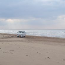 砂浜は観光バスで走っていても大丈夫なくらい丈夫でした。