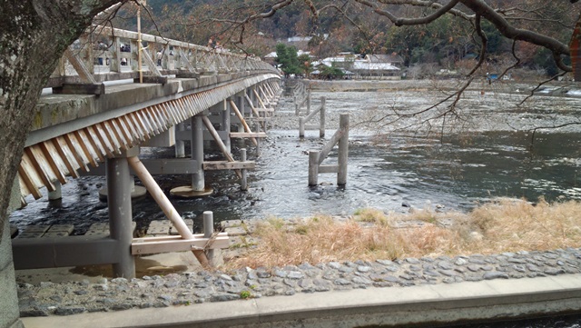 紅葉の時期はもちろん年中観光客が絶えない渡月橋です。