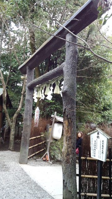 赤い鳥居ではない、クヌギを用いた「黒木鳥居」は珍しく、美しいものでした。