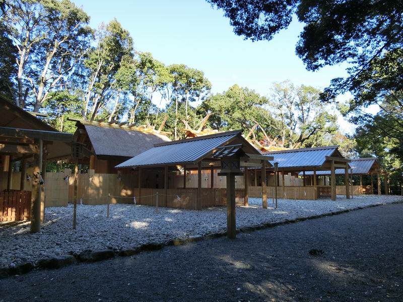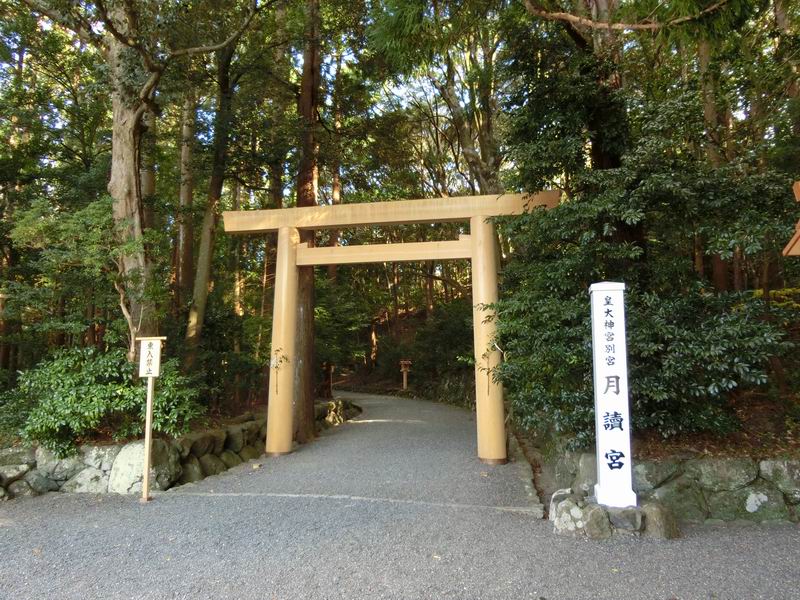 正式には「月讀宮」と難しいほうの表記です。月讀宮のほか、月讀荒御魂宮、伊佐奈岐宮、伊佐奈彌宮の4つの内宮別宮が横一列に並んでいます。上位から月讀宮→月讀荒御魂宮→伊佐奈岐宮→伊佐奈彌宮と参拝するのが良いとされています。式年遷宮によって新しい社殿になっていて、旧社殿は新社殿の裏手にあるため見えず、解体工事中で近づけませんでした。