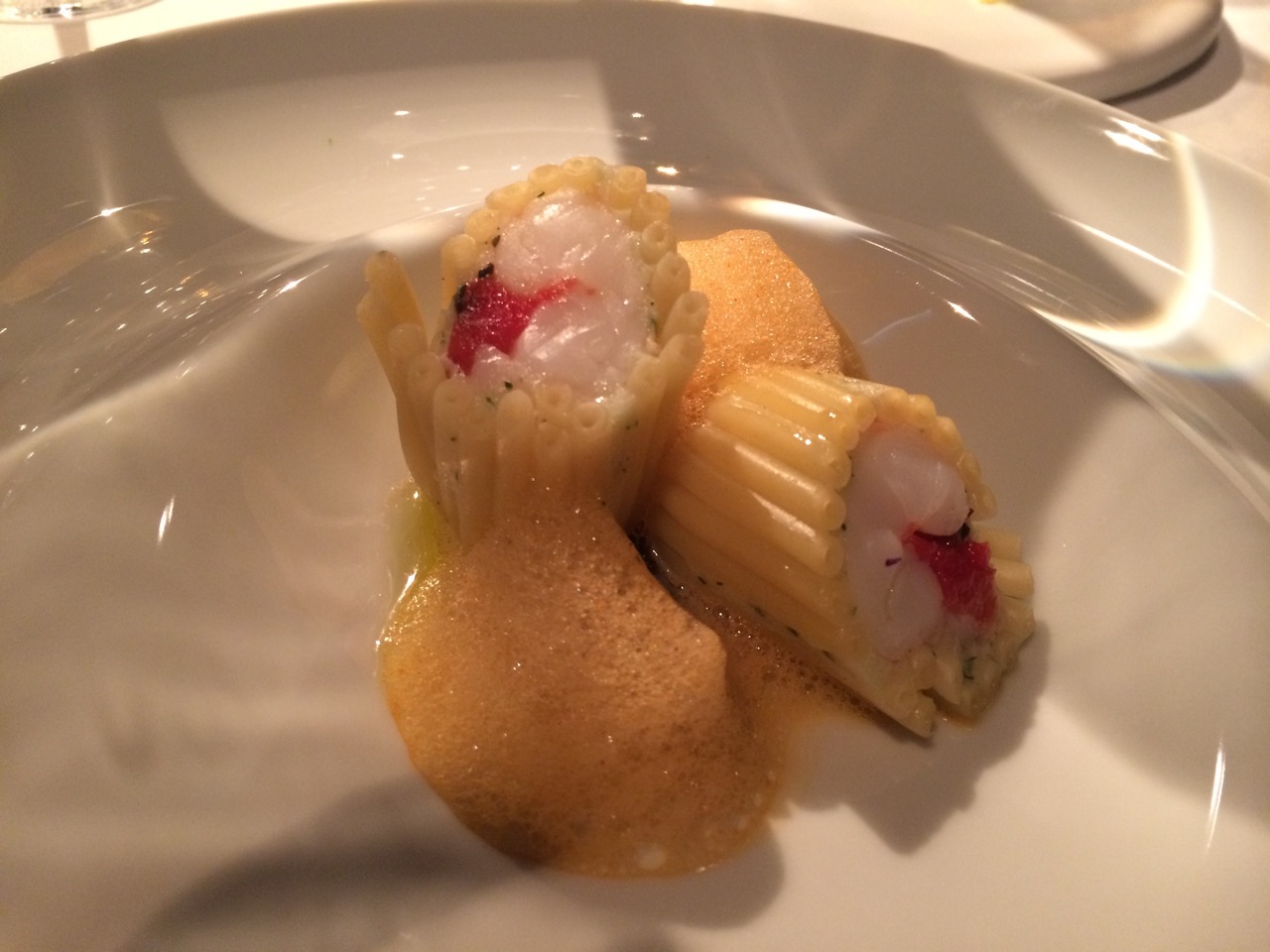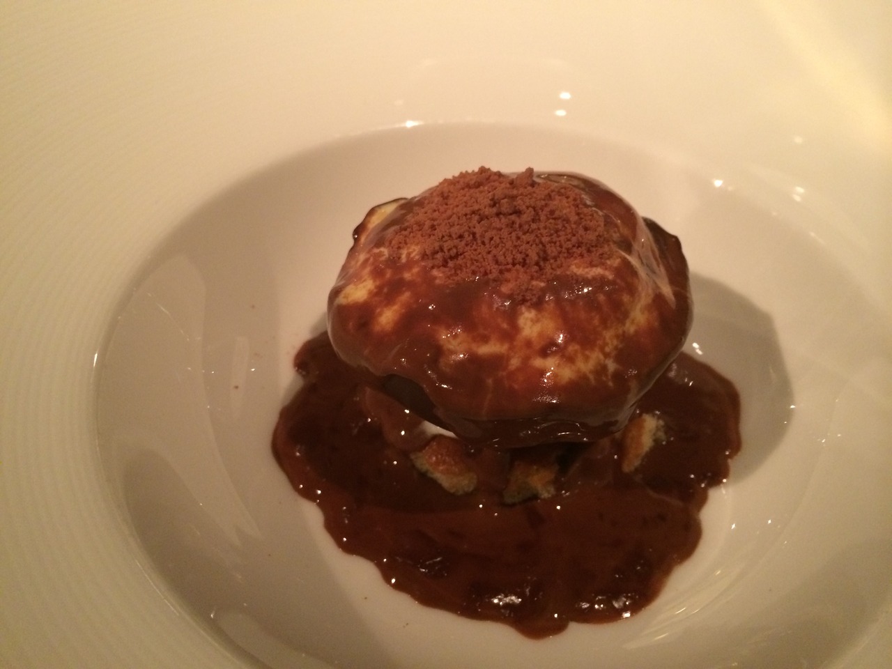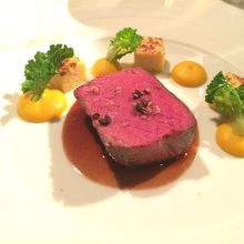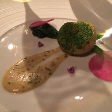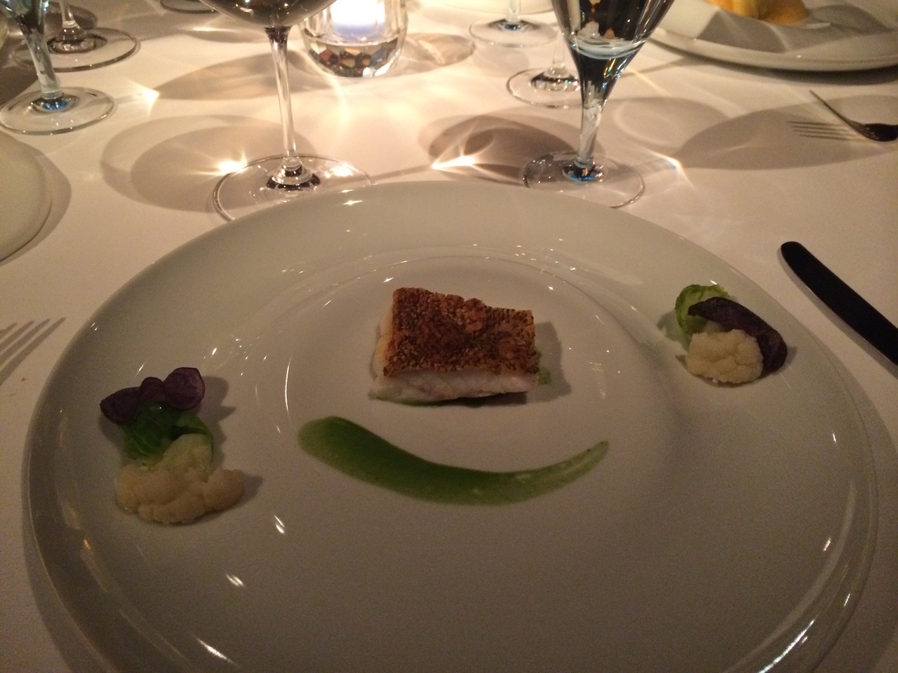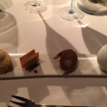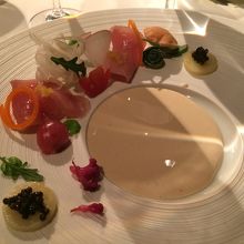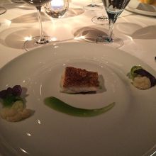 ディナーに行きました。4名での場合は窓側から2番目の列のテーブルのようです。それでも夜景は楽しめます。味はもちろん、パティシエ出身のシェフだけあって見た目もいい感じ。次のお料理がどんな感じででてくるのか楽しみでした。女性好みのお料理です。もちろんデザートは最高でした。