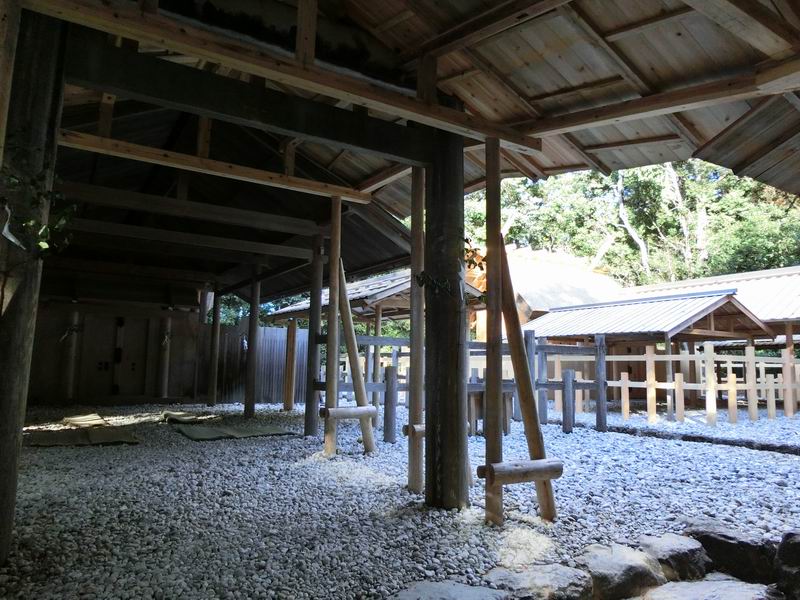 別宮の中では最も新しく大正12年(1923年)の創建。信号のある倭姫前交差点に参道入口があります。そこからまずは緩やかに下り坂。さらに進んで今度は石段を上った先にお宮があります。この日は祭事が行なわれるそうで、報道陣がカメラを構えて待機中でした。新旧の社殿が両方見られる状態で、賽銭箱など参拝所はまだ古いほうの社殿にありました。アクセスは徴古館前バス停より参道入口まで歩いてすぐ。入口から社殿までの参道は300mほどあります。