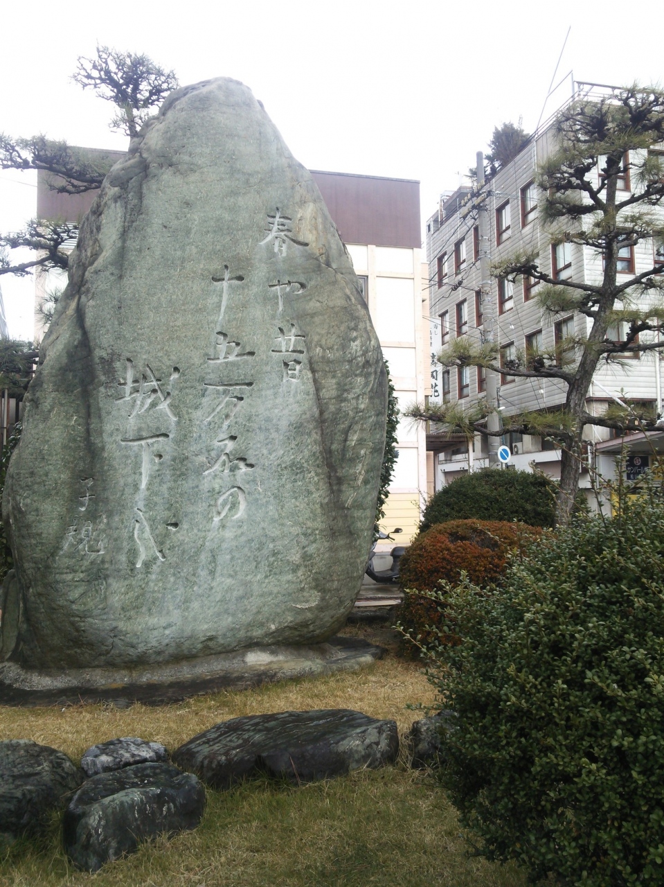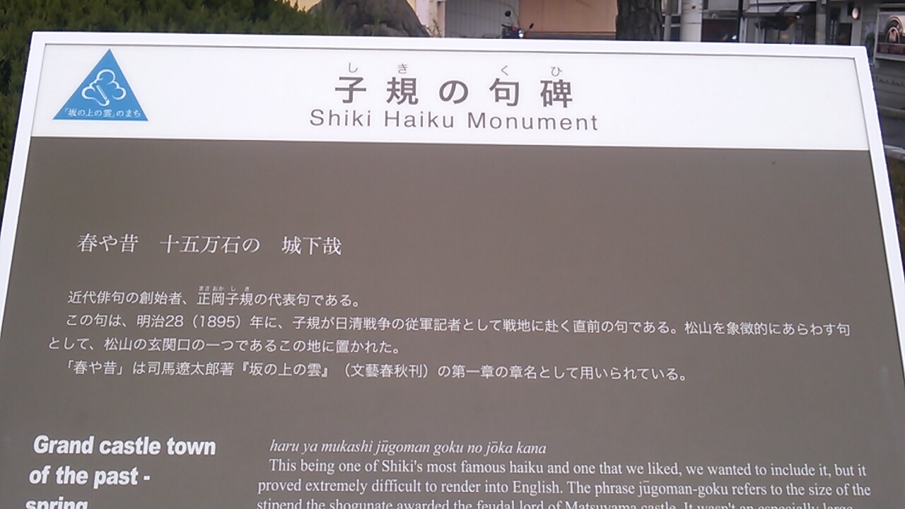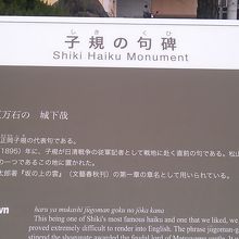 句碑には正岡子規が詠んだ「春や春十五万石の城下哉」という句が掲載され、案内板にはその句についてエピソードが記されていました。