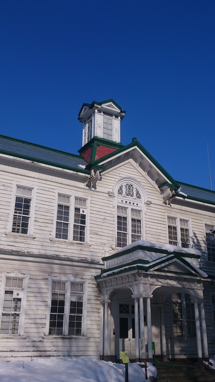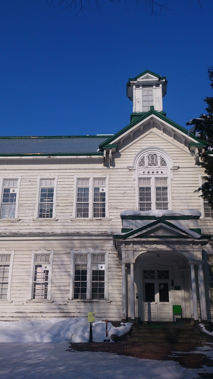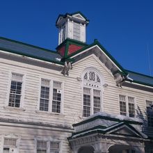 クラーク像の向い側 真っ白な木造の古河記念講堂