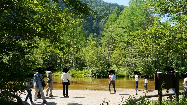 田代池は上高地にある景勝ポイントの一つで国の特別天然記念物に指定。大正池同様、焼岳の噴火により流出した土砂に沢の水がせき止められて形成されたもの。深さは浅く、にごりのない透明度の高い池の水は大変きれいに感じた。