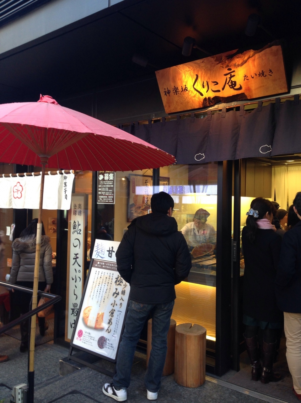 斜め向かいにある有名は「ぺこちゃん焼き」と比べるとインパクトはないですが、パリパリの皮ととろり餡は普通に美味しいです。寒い冬の神楽坂散歩にはほくほくのたい焼きがよく合います。