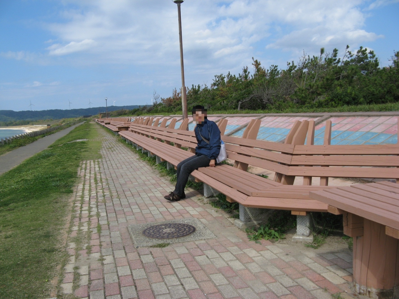 ベンチの真ん中あたりに道の駅につながる階段があって、そのそばに岸壁の母の舞台になった記念碑もありました。海を見ながらぼーとするのに良いところかも。