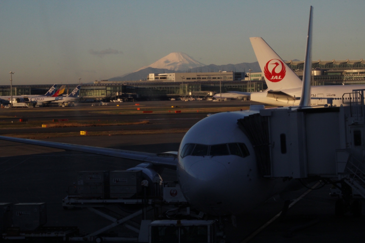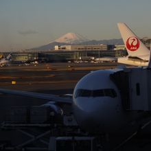 沖縄に行くとき羽田空港第一旅客ターミナルを利用しました。この日は天気が良くターミナルの待合室から滑走路越しに富士山がくっきりと見えました。こんなに綺麗に見ることが出来るならチェックインの前に展望デッキに立ち寄ればよかったです。