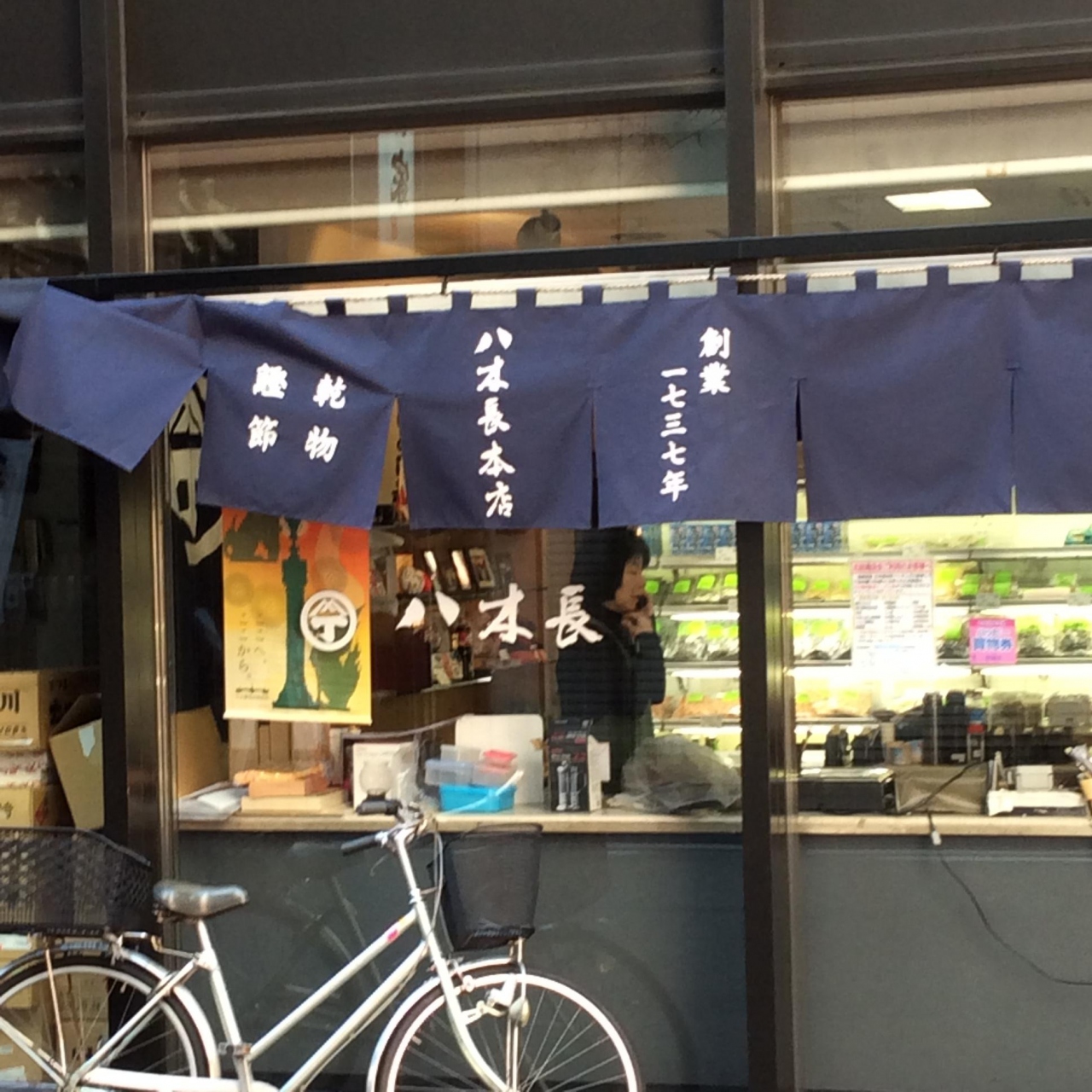 日本橋三越本店の新館の道を挟んで向かい側の中央通り沿いにあります。創業は元文2年という老舗で、鰹節、しいたけ、昆布、煮干しといっただしの材料をはじめ、豆類、乾麺、高野どうふなどの乾物を販売しています。乾物はここに決めています。