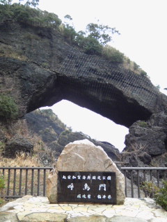 長い時間をかけ、風と波の侵食によってくりぬかれた自然の大トンネルです。写真では分かり辛いですが、高さ約15m・幅約30mもあるそうです。
