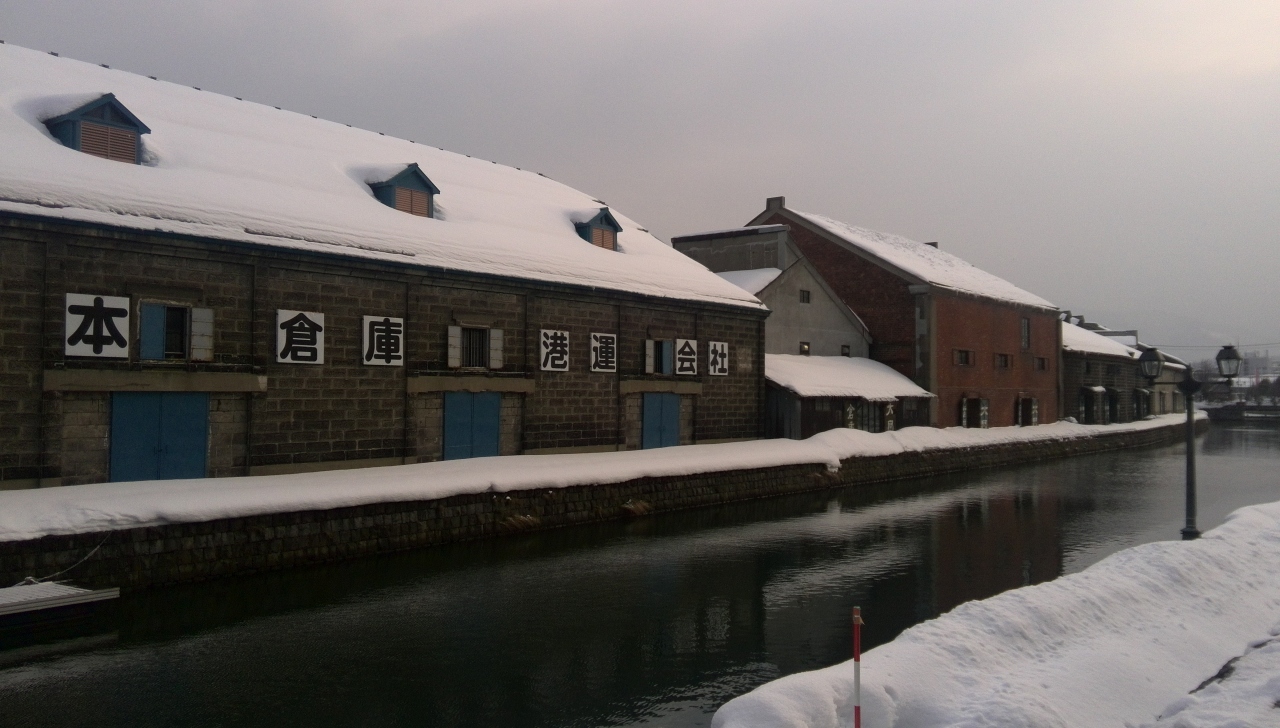 小樽駅を歩いて10分ほどで運河沿いに出ます。古い倉庫がずら~っと並んでいました。夜はライトアップされてとっても情緒があり綺麗です。人力車の方の話だと少し歩いて行くと使用している運河もありお勧めだということです。