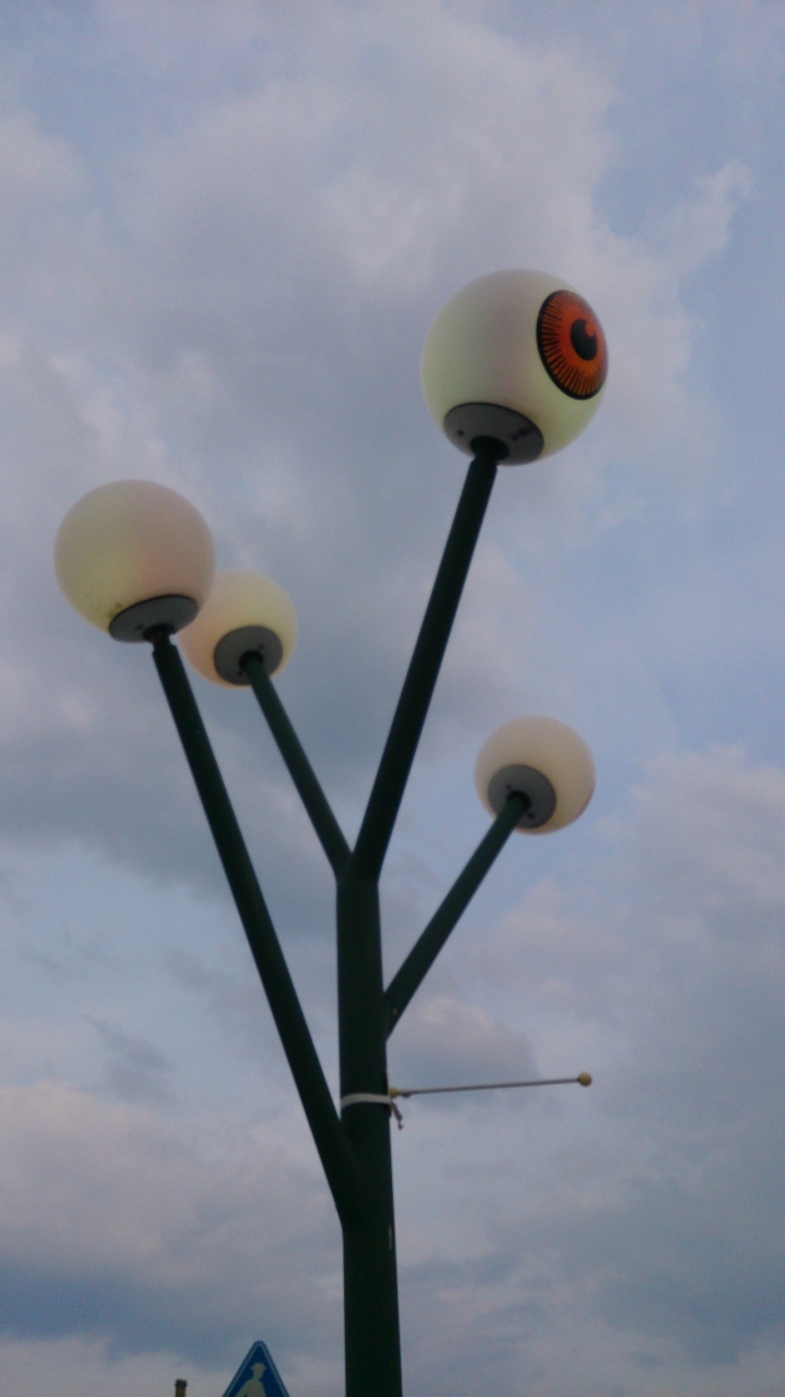 目玉の街灯が怖かった、、。