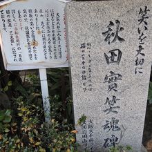 秋田實歌碑 笑魂碑は玉造稲荷神社の境内にありますが、少し見にくいところに建っています。