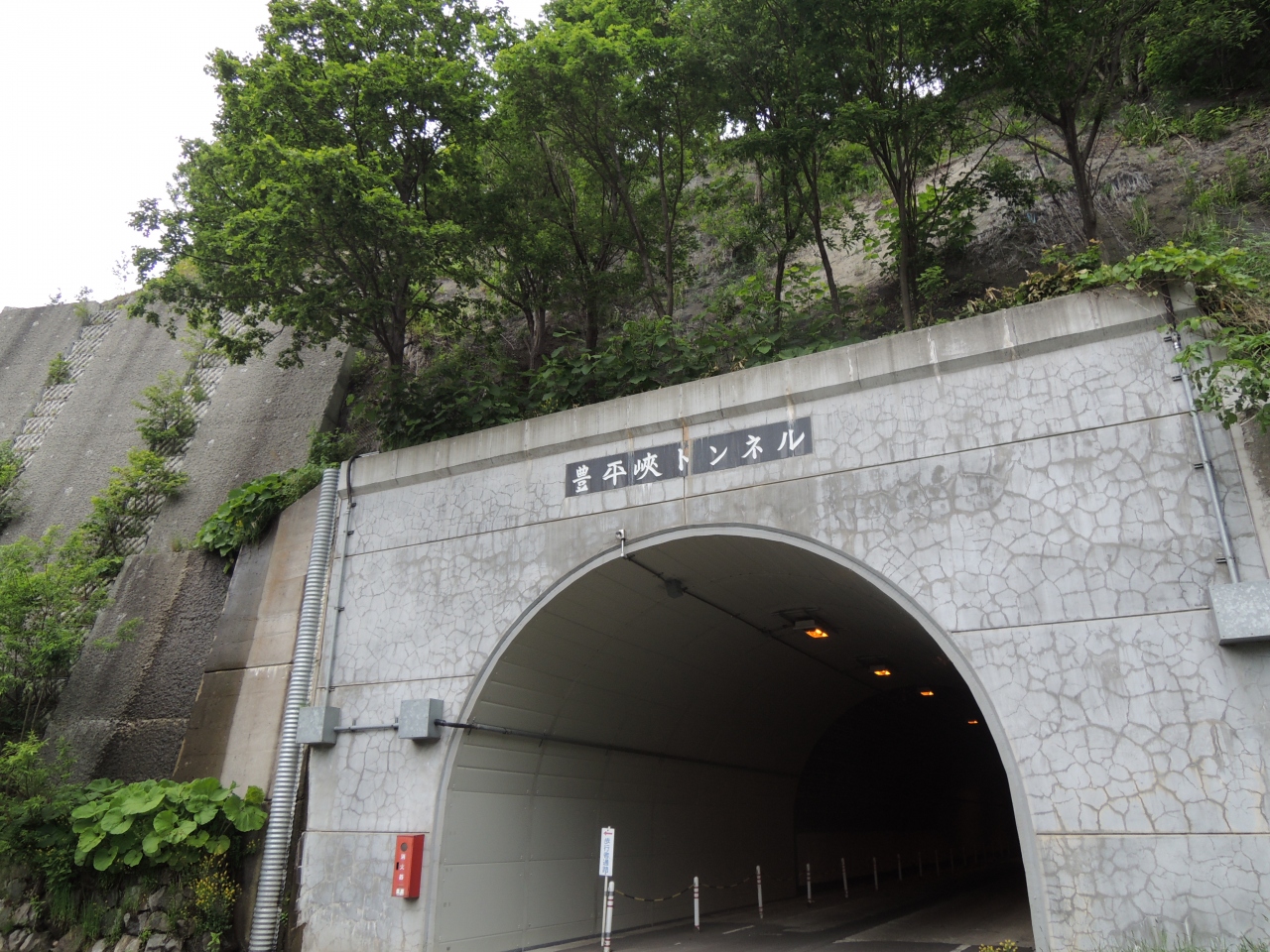 バスに乗車しトンネルを抜けると小さな滝が見えます。