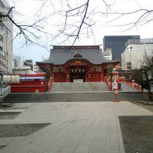 地下鉄の新宿3丁目の駅と直結されアクセス抜群で、明治通り靖国通りの大通りに面した都会の神社です。