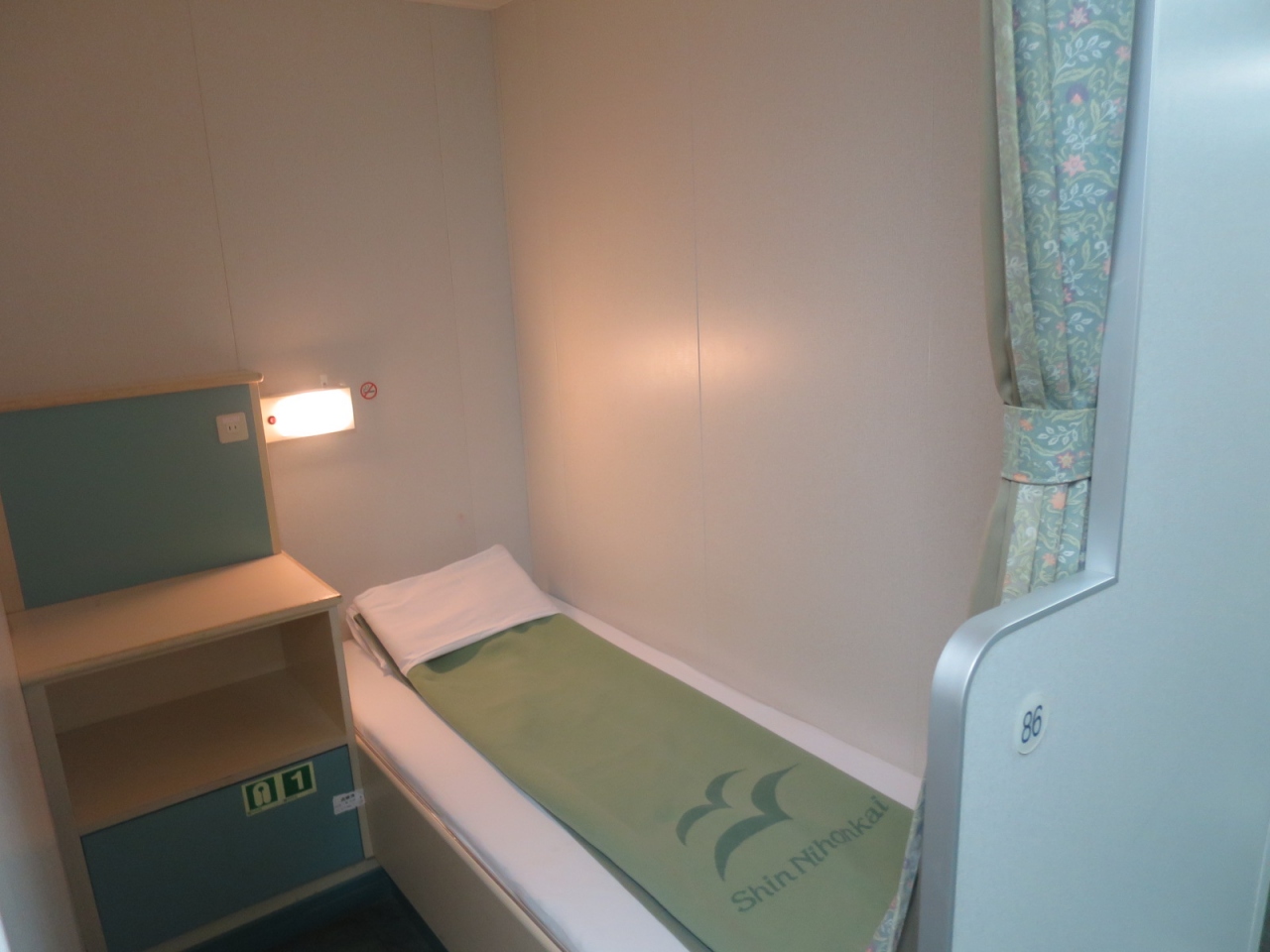 年末年始の帰省の時期に小樽→新潟の便を利用しましたが、乗っていた乗客は30人くらいだったのではないかと思います。個室もかなりがらがらでした。ツーリストJという大部屋でも良かったかなと思うほどでした。個室(ツーリストS)は乗船してすぐの船内カウンターで場所が指定されました。ベッド幅も寝台列車より広く、部屋内も列車に比べてゆったりしています。電気コンセントもあり、便利でした。